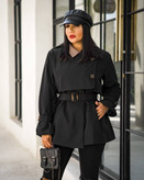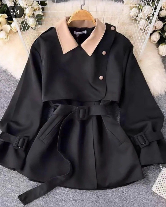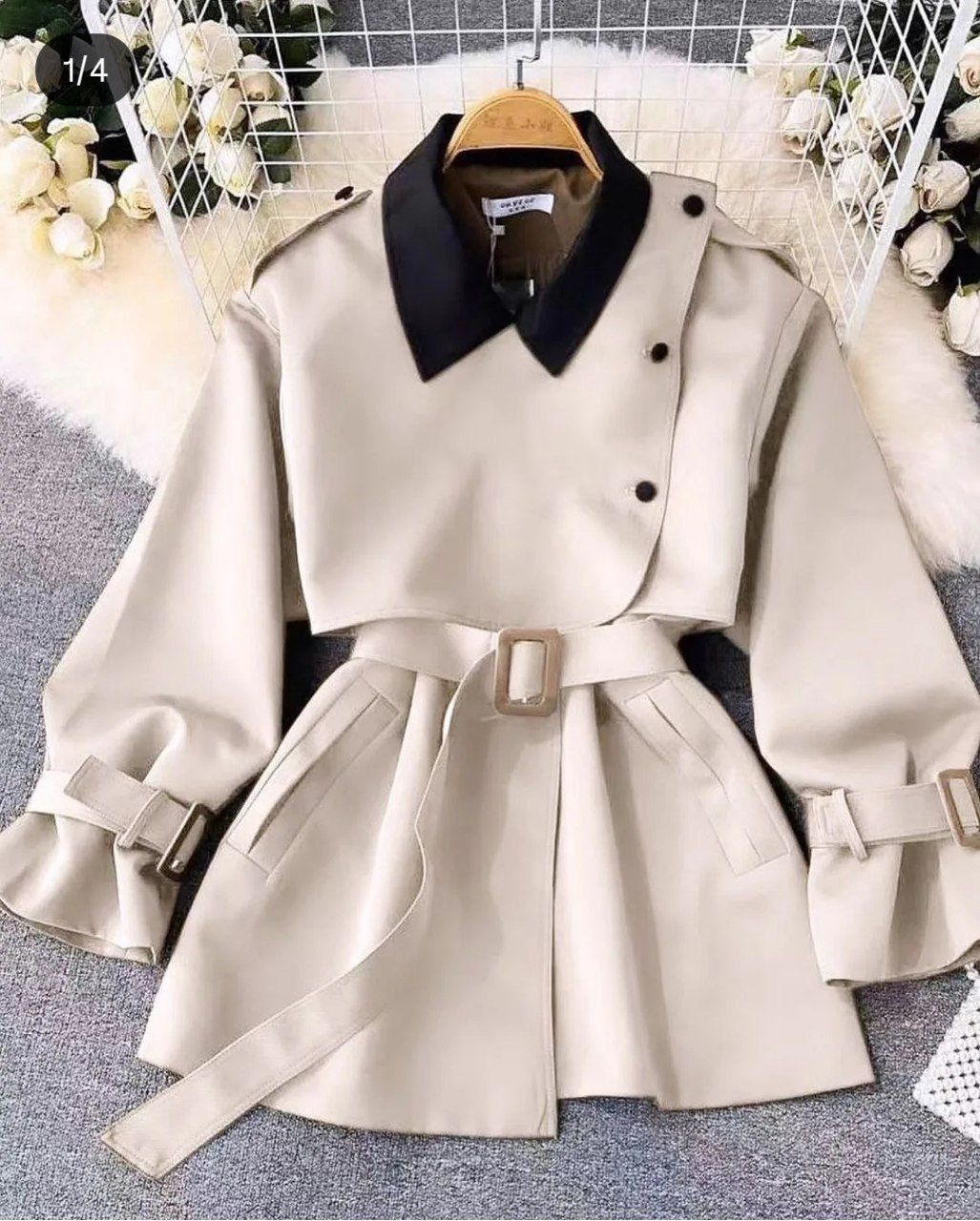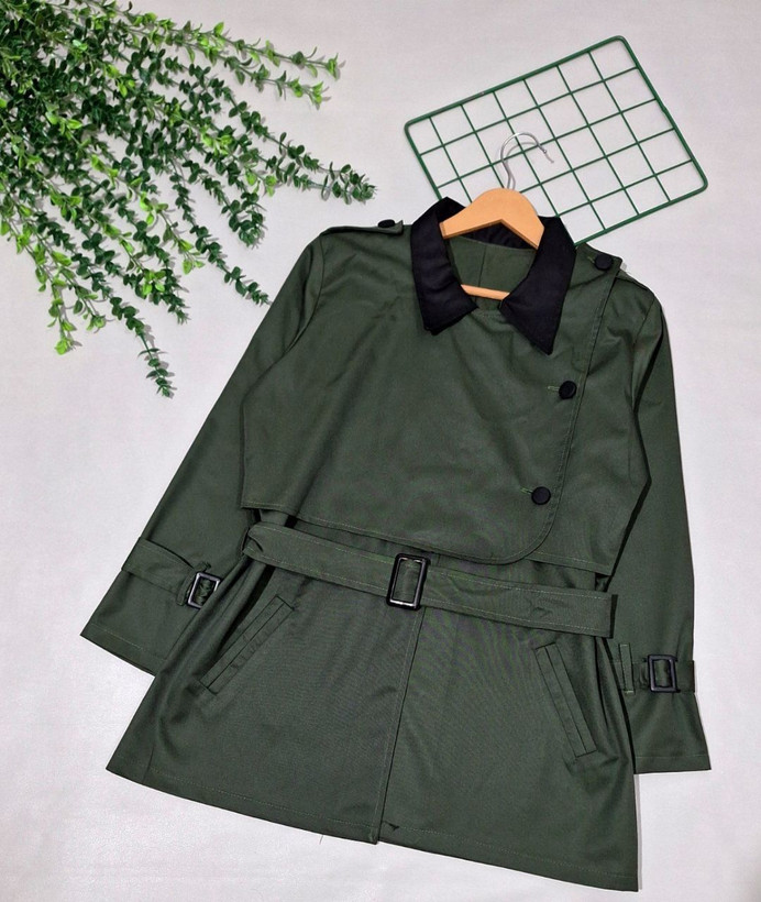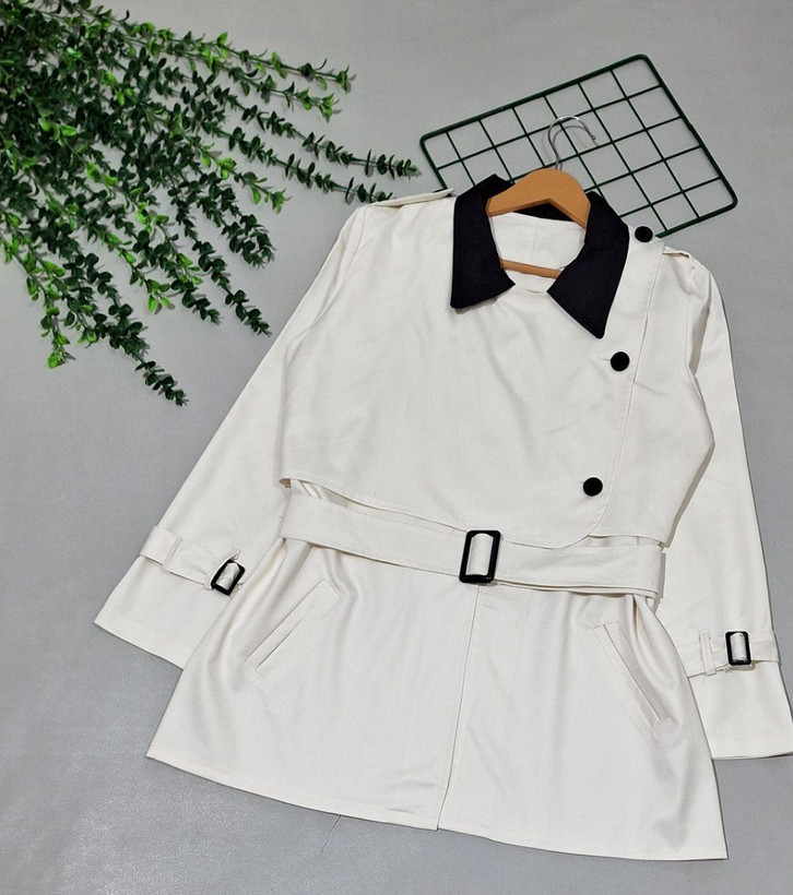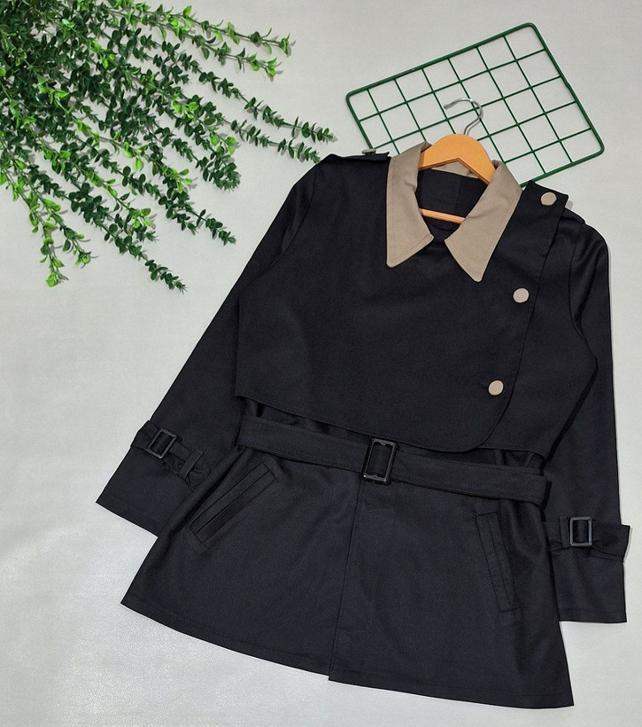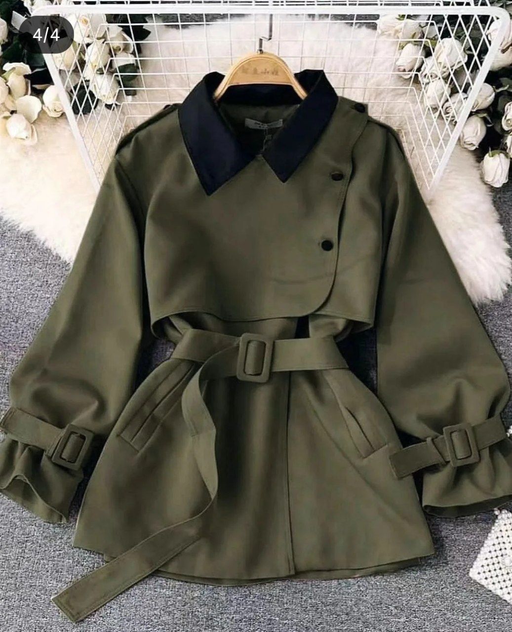 مانتو بارونی زنانه کتان کج راه گرم بالا