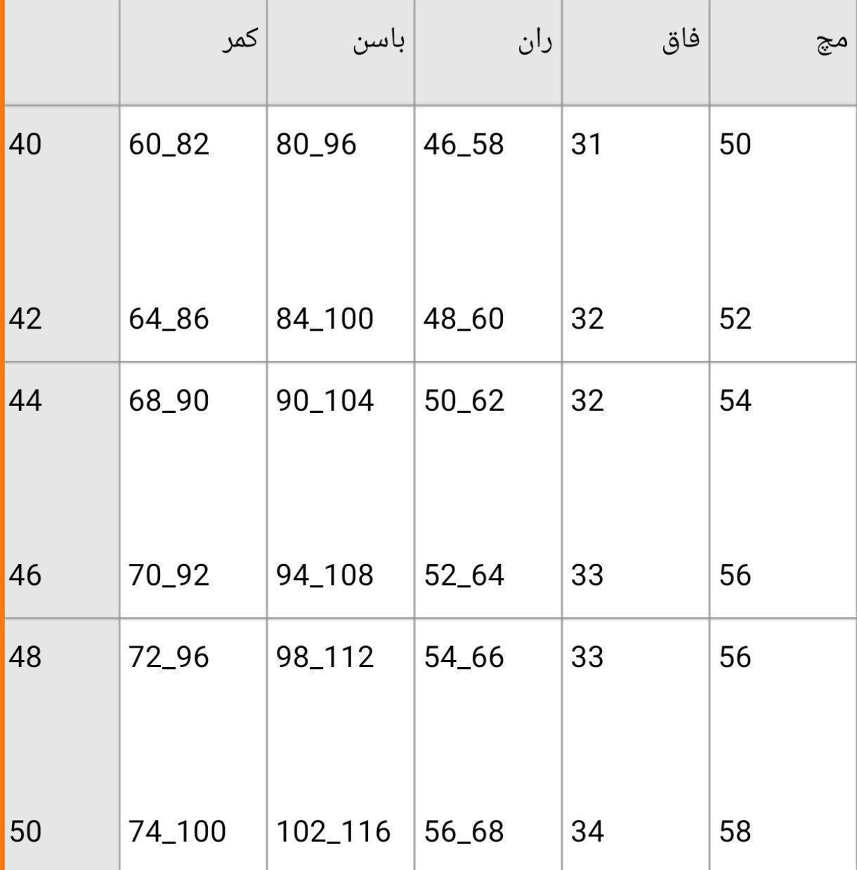 📌سایزبندی ۴۰ تا ۵۰