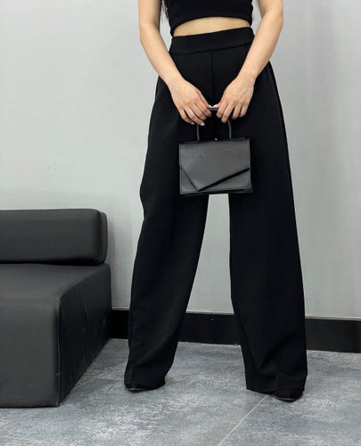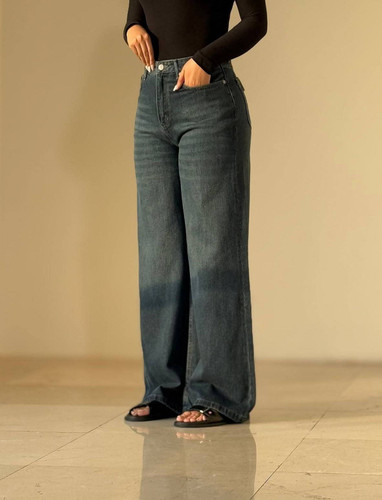 شلوار واید لک گازوئیلیسایه دار پارچه ترک کمر ساده