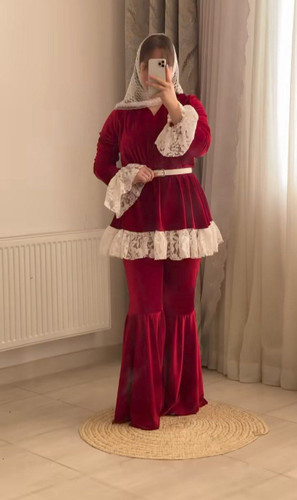 ست دورس و شلوار زنانه پاپیونی اسپان ضخیم